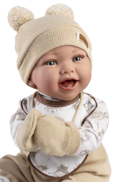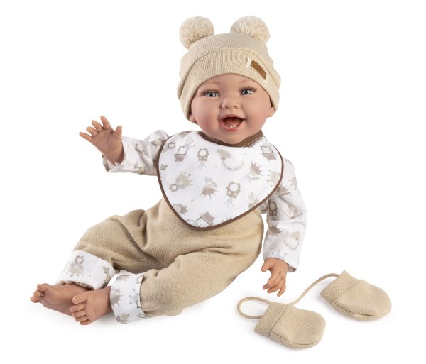 Bábika bábätko bez zvuku s mäkkým látkovým telom. Ruky a nohy sú k telu prichytené kĺbom. Bábätko je polohovacie a môže aj sedieť. Veľkosť 42 cm. Ručne vyrobené v Španielsku, balené v darčekovej krabici. Odporúčaný vek od 3 rokov.