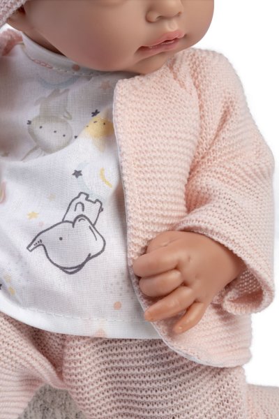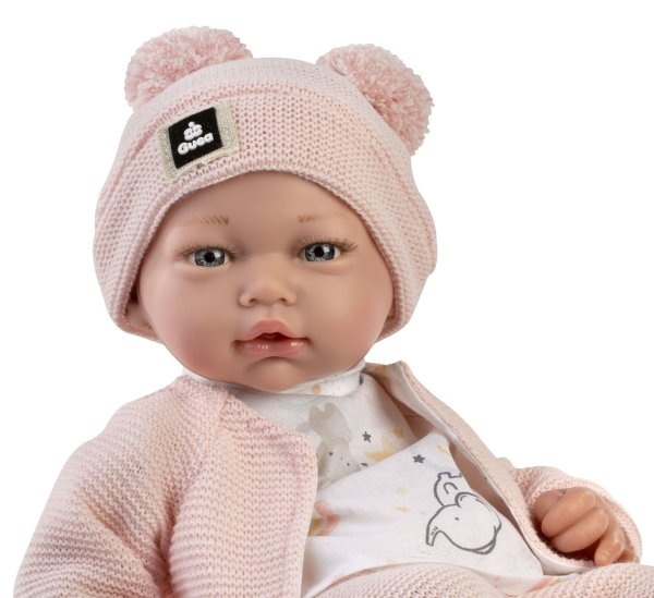Bábika bábätko bez zvuku s mäkkým látkovým telom. Ruky a nohy sú k telu prichytené kĺbom. Bábätko je polohovacie a môže aj sedieť. Veľkosť 36 cm. Ručne vyrobené v Španielsku, balené v darčekovej krabici. Odporúčaný vek od 3 rokov.