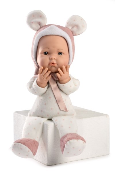 Ručne vyrobená španielska bábika bábätko. Bábika má mäkké látkové telo, hlava a končatiny sú vyrobené z kvalitného mäkčeného vinylu. Veľkosť 36 cm. Balené v darčekovej krabici. Odporúčaný vek od 3 rokov.