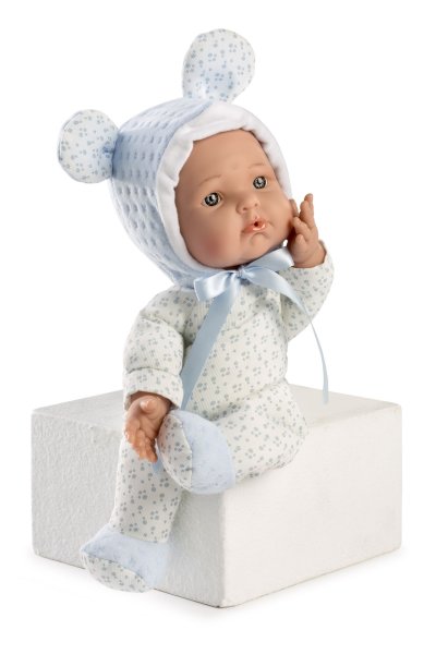 Ručne vyrobená španielska bábika bábätko. Bábika má mäkké látkové telo, hlava a končatiny sú vyrobené z kvalitného mäkčeného vinylu. Veľkosť 36 cm. Balené v darčekovej krabici. Odporúčaný vek od 3 rokov.