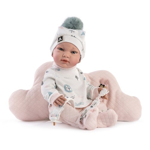 Bábätko bez zvuku s vinylovým telom s možnosťou kúpania, na ktorom je zachytený doslova každý detail detského telíčka vrátane roztomilých bábätkovských faldíkov a pohlaví. Bábätko sa dá kúpať, ale je potrebné dať pozor, aby sa nenamočili riasy. Odlepené riasy nie sú potom dôvodom na reklamáciu. Ruky a nohy sú k telu prichytené kĺbom. Bábätko je polohovacie a môže aj sedieť. Cumlík v balení slúži iba ako doplnok. Veľkosť 42 cm. Ručne vyrobené v Španielsku, balené v darčekovej krabici. Odporúčaný vek od 3 rokov.