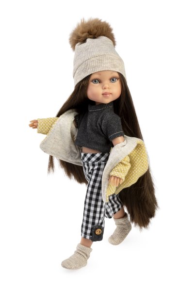 Bábika bez zvuku s vinylovým telom a bohatými dlhými vláskami až ku členkom, ktoré sú "rastlé" po celej hlave a dajú sa česať. Ruky a nohy sú k telu prichytené kĺbom. Bábika je polohovacia a môže aj sedieť. Veľkosť bábiky 34 cm. Ručne vyrobené v Španielsku, balené v darčekovej krabici. Odporúčaný vek od 3 rokov.