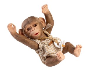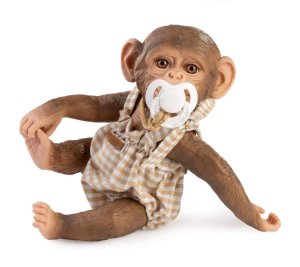 2dielny set: 1 kus oblečenia a cumlík pre opičku bábätko REBORN veľkosti 32 cm. Vyrobené ručne v Španielsku, balené v igelitovom obale na kartónovej podložke. Odporúčaný vek od 3 rokov.