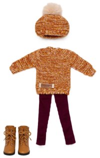 4dielny set: 3 kusy oblečenia a topánočky pre bábiku Penelope veľkosti 34 cm. Vyrobené ručne v Španielsku, balené v igelitovom obale na kartónovej podložke. Odporúčaný vek od 3 rokov.