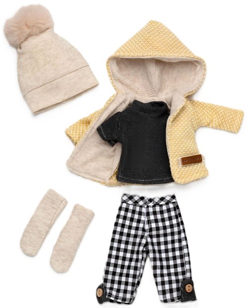 5 kusov oblečenia pre bábiku Penelope veľkosti 34 cm. Vyrobené ručne v Španielsku, balené v igelitovom obale na kartónovej podložke. Odporúčaný vek od 3 rokov.