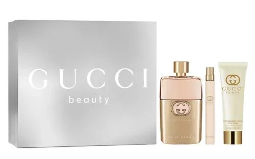 Guilty Eau De Parfum z kolekcie Gucci Guilty je orientálno-kvetinová vôňa pre ženy. Citrusovú hlavu dopĺňajú tóny ružového korenia, v čisto kvetinovom srdci ucitíte ružu, orgován, pelargóniu a fialku. Kompozíciu uzatvára jednoduchý základ v podobe hrejivej ambry a pačuli. Na trh bola uvedená v roku 2019.