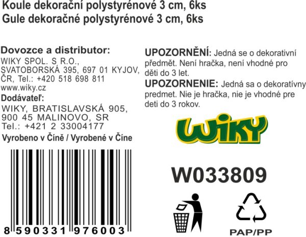 Guľa dekoračná polystyrénová 3 cm, 6ks