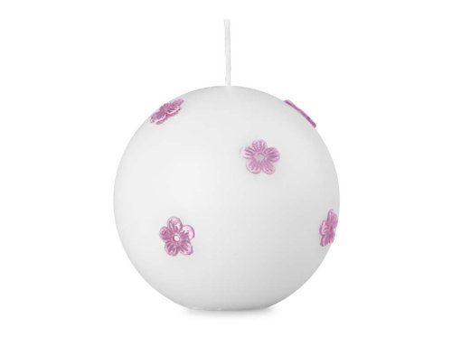 Guľa s fialovými kvetmi 70mm mat biela sviečka