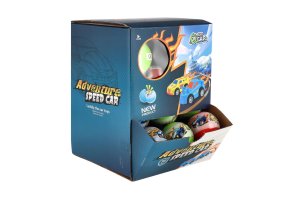 Vnútri gule sa nachádza plastové auto s veľkosťou 5 cm, ktoré sa dá natiahnuť späť a následne sa rozbehne. Vďaka spätnému natiahnutiu si deti užijú veľa zábavy pri pozorovaní, ako auto rýchlo uteká.