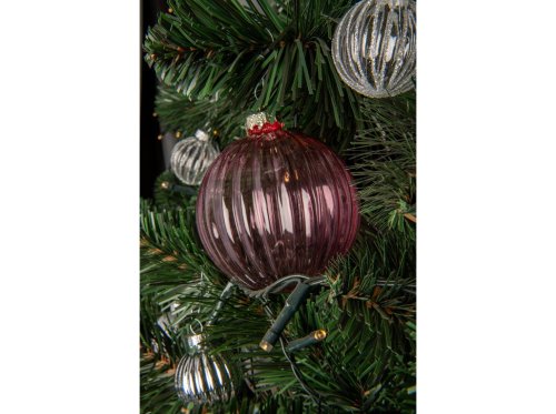 Guľa sklo 6ks 80mm na stromček mix, číra s glitrom, ružová