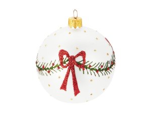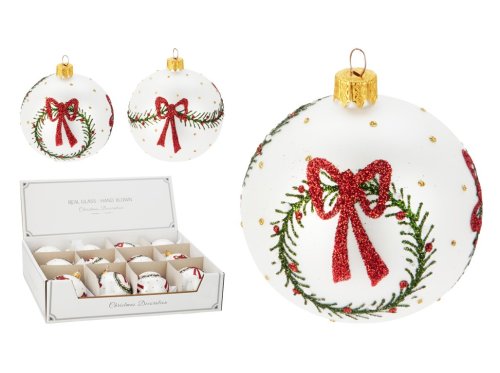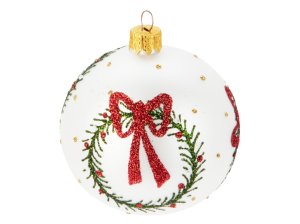 Guľa sklo 80mm na stromček mašľa s girlandou matná mix, farebná