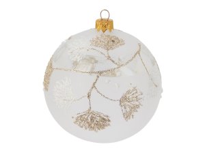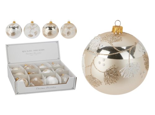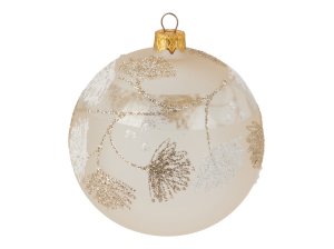 Guľa sklo 80mm na stromček matná vetvička so strieborným a zlatým glitrom, mix farieb