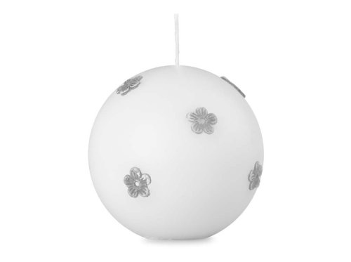 Guľa so šedými kvetmi 70mm mat biela sviečka