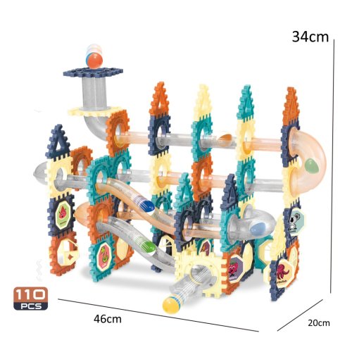 Zostav si svoju guličkovú dráhu. Výrobok rozvíja predstavivosť. Vďaka tejto stavebnici môžeš stavať rôzne scény, trojrozmerné scény, hrať hry (domino, ktorá gulička bude prvá v cieli?), stavať čokoľvek ťa napadne. Objavte svet zábavy s touto rozsiahlou guličkodráhou, ktorá obsahuje 110 ks rôznych dielikov! Táto kreatívna stavebnica ponúka neobmedzené možnosti na stavanie guličkových drah, trojrozmerných scén a ďalších fantastických štruktúr. Deti si môžu vytvárať vlastné závodné dráhy, experimentovať s rôznymi tvarmi a trasami alebo si zahrať hry ako domino a závody guličiek. Každá stavba rozvíja predstavivosť, priestorovú orientáciu a motorické schopnosti.