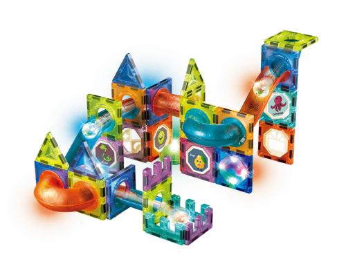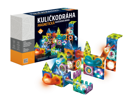 „Vytvor si vlastnú guličkovú dráhu a zaži nekonečnú zábavu pri stavaní, hraní a objavovaní! Táto kreatívna stavebnica ti umožní postaviť rôzne scény, trojrozmerné štruktúry, alebo si zahrať rôzne hry, ako je domino, alebo zistiť, ktorá gulička bude prvá v cieli. Dráha je vybavená svetelnými efektmi, ktoré fungujú vďaka LR1130, LR41 a CR1220 batériám (nevymeniteľné, jednorazové použitie),