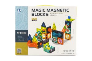 Magnetická stavebnica bloky - dráha. Zábavná hra s magnetmi, pomocou ktorých vytvárate kreatívne tvary a dráhu pre svoje guličky. Po dostavení svojej trasy Vás čaká chvíľu napätie! Prejdú plastové guličky od začiatku do konca? Stavebnica zlepšuje predstavivosť a kreatívne myslenie dieťaťa. Skvelá vzdelávacia hračka pre vzdelávanie v ranom detstve. 66 dielikov v balení. Rozmery krabice: 31 x 25 x 8 cm Vhodné pre deti od 3 rokov