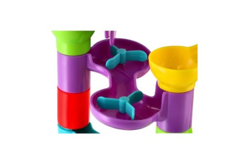 Guľôčková dráha umožňuje sledovať cestu guličky a jej rýchlosť z hornej časti až dole. Ktorá gulička bude rýchlejšia a ktoré zostavenie dráhy bude zaujímavejšie? Farebná guličková dráha obsahuje množstvo prekážok, ktoré zvyšujú napätie, či gulička správne prebehne celou stavebnicou. Zostaviť dráhu môže dieťa mnohými spôsobmi, podľa vlastnej fantázie. Stavebnica slúži na precvičenie jemnej motoriky a donúti dieťa premýšľať. Balenie obsahuje 55 ks z toho 10 guličiek. Rozmer: 24 x 35 x 8 cm Vhodné od 3 rokov