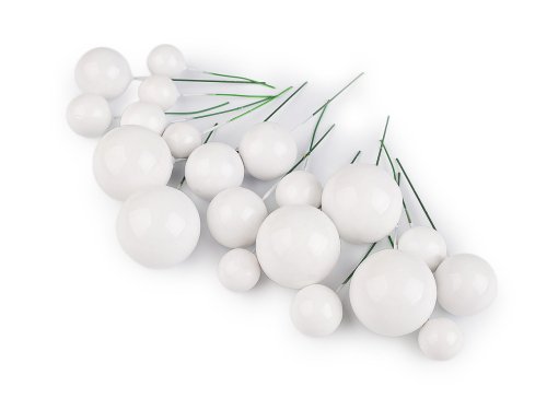Dekoračné guličky sú pripevnené k ohybnému floristickému drôtiku. Môžete ich zakomponovať do kvetinových väzieb, vencov, hrantíkov a rôznych dekorácií. Mix rôznych veľkostí pridáva výrobkom zaujímavú dynamiku a umožňuje kreatívnu variabilitu.