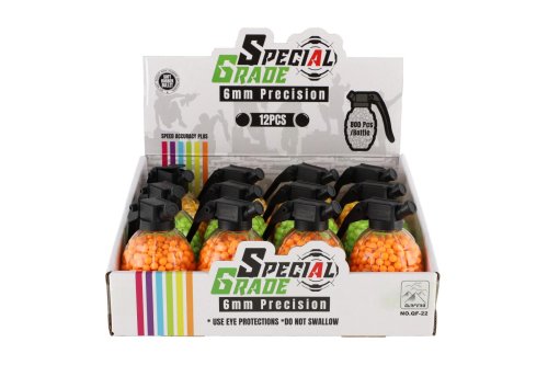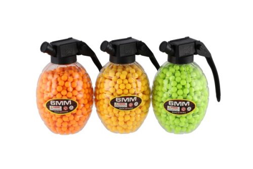 Set nábojov do pištole guličkovky v dóze v tvare granátu. Balenie obsahuje 800 kusov guličiek. Veľkosť dózy: 10 cm Vhodné od 3 rokov