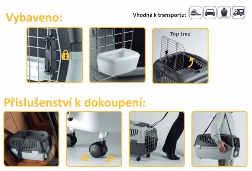 - Vybavená uzamykacím systémom, madlom na prenášanie a nádobkou na vodu alebo krmivo