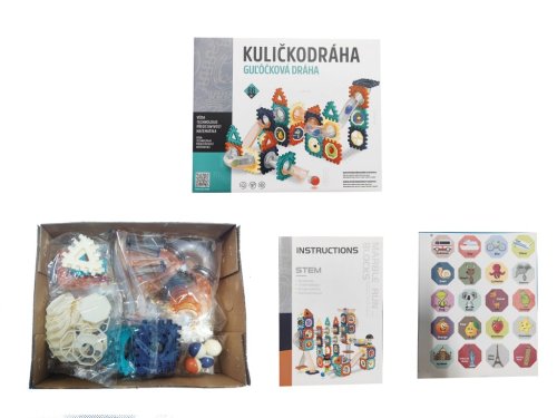 "Zostav si svoju guličkovú dráhu. Výrobok rozvíja predstavivosť. Vďaka tejto stavebnici môžeš stavať rôzne scény, trojrozmerné scény, hrať hry (domino, ktorá gulička bude prvá v cieli?), stavať čokoľvek ťa napadne. Objavte svet zábavy s touto rozsiahlou guľôčkodráhou, ktorá obsahuje 66 ks rôznych guličkových drah, trojrozmerných scén a ďalších fantastických štruktúr. Deti si môžu vytvárať vlastné závodné dráhy, experimentovať s
