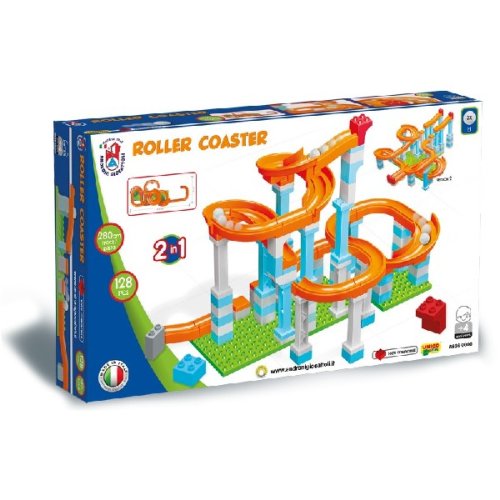 Novinka roku 2020 stavebnica Androni UNICO plus určená na stavbu guličkovej dráhy. Sada obsahuje 128 dielov vrátane 3 plastových guličiek a umožňuje zostaviť 2 rôzne guličkové dráhy s dĺžkou 280 cm. Rozmery 1. zostavenej varianty sú: dĺžka 76,5 × šírka 30 x výška 39 cm. Rozmery 2. zostavenej varianty sú: dĺžka 53,5 × šírka 54,4 x výška 24,5 cm. Súčasťou balenia je návod na zostavenie. Kocky sú plnohodnotne kompatibilné so stavebnicou Lego Duplo. Vyrobené v Taliansku z plastov špičkovej kvality. Vhodné pre deti od 4 rokov. Pri zakúpení všetkých troch guličkových dráh z tejto série vznikne dráha s dĺžkou 540 cm.