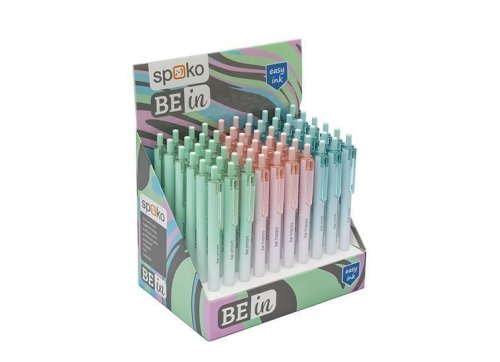 Tenké guľôčkové pero v pastelových farbách s potlačou: be happy, be smart, be cool. Odľahčené plastové telo so zamatovo hladkým povrchom. Modrá náplň Easy Ink - atrament s nízkou viskozitou pre pohodlnejšie a plynulejšie písanie. Dodávané vo farebnom mixe 3 bar
