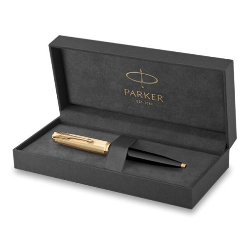 Telo z ušľachtilej živice v čiernej farbe a pozlátené mosadzné viečko s reliéfnym zdobením vytvoreným leptaním, korunka z nerezovej ocele pokovovaná paládiom a zlatom. V kombinácii s doplnkami pokovovanými zlatom. 1941, kedy bol Parker 51 prvýkrát uvedený, aj dnes sa jedná o prelomový av mnohých smeroch originálny písací nástroj. živica a pozornosť je venovaná každému detailu – viečko aj ďalšie časti pera zdobia prvky z drahých kovov, jednotlivé diely sú zostavované ručne. Súčasný, Parker 51 je inšpirovaný minulosťou, ale stvorený pre budúcnosť.
