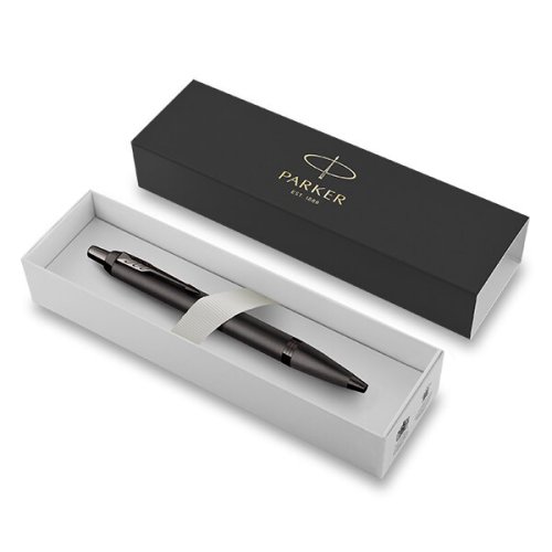 Guľôčkové pero (propiská): * stláčací mechanizmus, * dodávané s modrou náplňou, Dodávané v elegantnom darčekovom balení., V rade IM Monochrome Parker opäť využíva technológiu PVD.