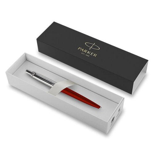 Guľôčkové pero:, * stláčací mechanizmus, * QuinkFlow náplň pre guličkové perá, Dodávané v darčekovej krabičke s modrou alebo čiernou náplňou - podľa skladovej dostupnosti., Parker Jotter je dizajnérskou klasikou a dôverne známym modelovým radom, oceňovanou najmä pre svoju kvalitu. Jedná sa o nadčasový model, ktorý aj vďaka širokej ponuke povrchových prevedení a praktickému, jednoduchému tvaru patrí medzi najobľúbenejšie., TIP: Kúpte si rovno aj náhradnú náplň Parker do guličkového pera.