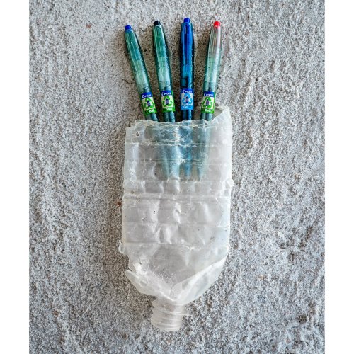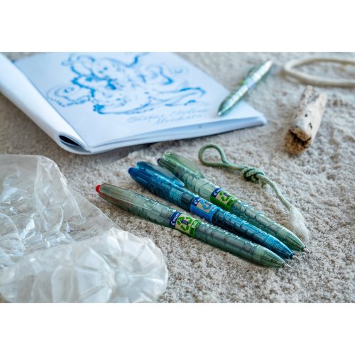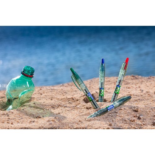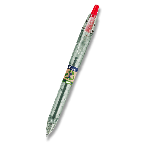 Guľôčkové pero Pilot B2P Ecoball so stiskacím mechanizmom, vyrobené z 86% z recyklovaných plastových fliaš s podielom min. 2,5 % recyklovaného oceánskeho plastu.