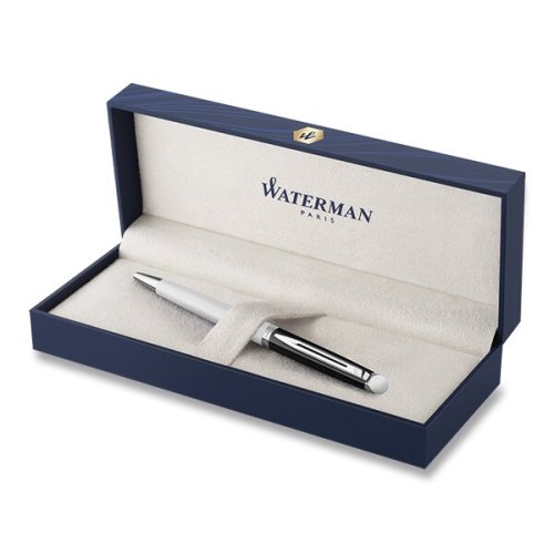 Guľôčkové pero (propiská):, * otočný mechanizmus, * štandardná náplň pre guličkové pero, dodávané s modrou náplňou, Dodávané v darčekovej krabičke., Hémisphère predstavuje jasný príklad čistého, jednoduchého dizajnu, v ktorom sa skrýva nekonečná hĺbka dokonalosti. Štíhla línia, ktorej dynamickosť zdôrazňuje dvojramenný klip, a zošikmený vrchol, je umocnená hlbokým lakom dokonale vyhladeného plášťa aj plášťom z kefovanej ocele.