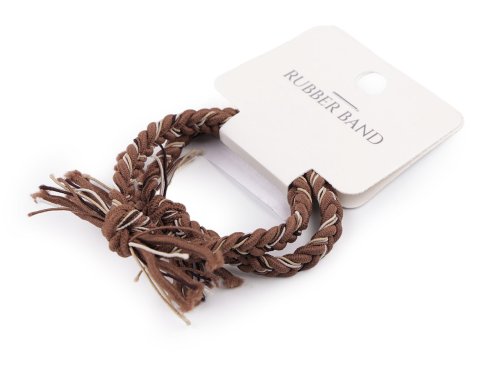 Gumičky do vlasov so strapatými koncami vás potešia svojim zaujímavým dizajnom. Sú spletené z niekoľkých tenších, farebne ladiacich gumičiek do vrkôčiku. Využijete ich na silné aj tenké vrkoče, efektne ozdobia účes. Vďaka spleteniu sú veľmi pevné. [Môžete ich nosiť aj ako náramky.] Vnútorný priemer gumičky voľne položenej je cca 3,5 cm, maximálna dĺžka obvodu po roztiahnutí je 26 cm. Gumičky sú zavesené na karte, ktorá má otvor na zavesenie na predajný stojan. Na jednej karte sú 2 gumičky.