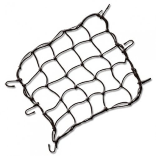 Elastická nylonová sieť na košík či nosič je vybavená odolnými háčikmi pre ľahké a bezpečné zaistenie nákladu.