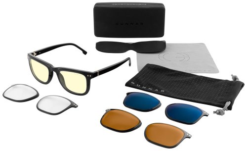 Okuliare GUNNAR CUPERTINO ONYX vám poslúžia pri kancelárskej práci na PC, hraní hier a ďalších aktivitách. Tento model disponuje jantárovými sklami, ktoré blokujú 65% modrého svetla a 100% ultrafialového žiarenia. Súčasťou balenia je aj sada vymeniteľných skiel, s rôznou mierou blokácie modrého svetla . Na výmenu sú k dispozícii číre (35%), tmavé (90%) alebo jantárové sklá MAX (až 98%) , pričom všetky typy potláčajú 100% ultrafialového žiarenia .