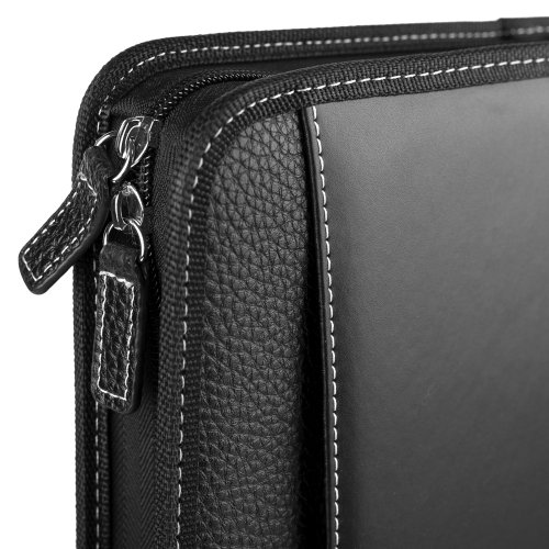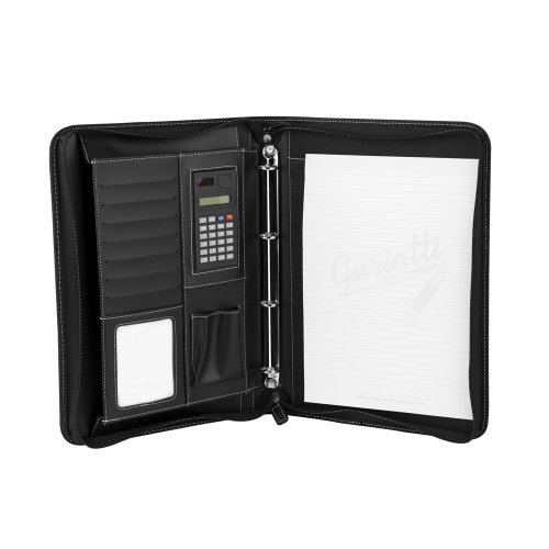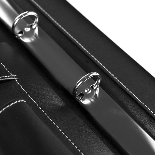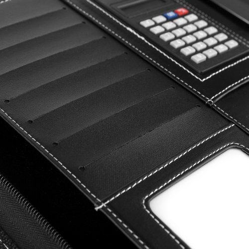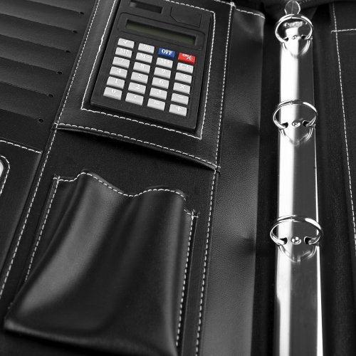Táto diplomatka formátu A4 ponúka 4-krúžkový zakladač, ktorý umožňuje prehľadnú organizáciu dokumentov. Praktické miesto pre blok (blok je súčasťou) zaistí ľahké zapisovanie poznámok, zatiaľ čo vstavaná kalkulačka vám pomôže rýchlo vyriešiť všetky výpočty. K dispozícii je osem vreciek na karty alebo vizitky, dve veľké vrecká na dokumenty a menšie vrecko na drobnosti, ktoré uľahčia organizáciu všetkých nevyhnutností.