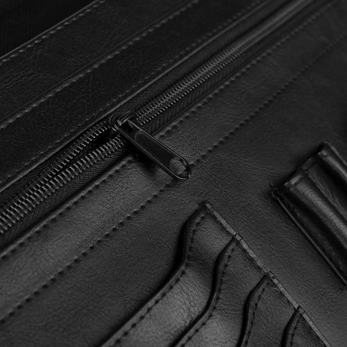 Vyrobená z odolnej ekologickej kože v nadčasovej čiernej farbe, diplomatka Guriatti MODERN vyzerá vždy profesionálne. Zapínanie na dva zipsy zaisťuje bezpečnosť uložených vecí a jednoduchú manipuláciu. Elegantné madlo uľahčuje prenášanie a dodáva celej diplomatke šmrnc elegantné tašky.