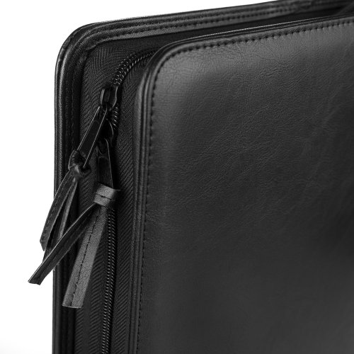 Táto diplomatka obsahuje 4-krúžkový zakladač na dokumenty, ktorý zaistí ich prehľadné a bezpečné uchytenie. Miesto pre blok (súčasťou balenia) s pevným klipom vám umožní pohodlne zapisovať poznámky. Praktické vrecká na vizitky, telefón, drobné príslušenstvo a dokumenty vám poskytnú ľahký prístup ku všetkému dôležitému. Navyše vrecko na zips ochráni cennosti či menšie predmety.