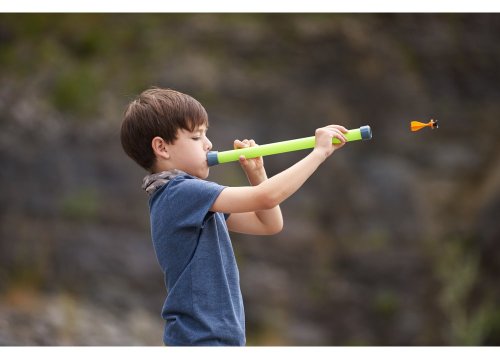 Vložte šípku do fúkacej pištole, zhlboka sa nadýchnite a vyfúknite šípku vlastným vzduchom! Táto tvrdá plastová tuba má 4 šípky, ktoré môžete strieľať kdekoľvek. Šípky majú skvelé letové vlastnosti. Balenie obsahuje: 38,8 cm fúkaciu tubu, 4ks bezpečnostné šípky s mäkkými prísavkami Dosah: cca 10 m Vhodné pre deti od 8 rokov.