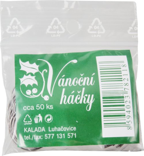 Vianočný závesné háčiky - železný lesk, dĺžka 5 cm. Balenie obsahuje 50 ks.