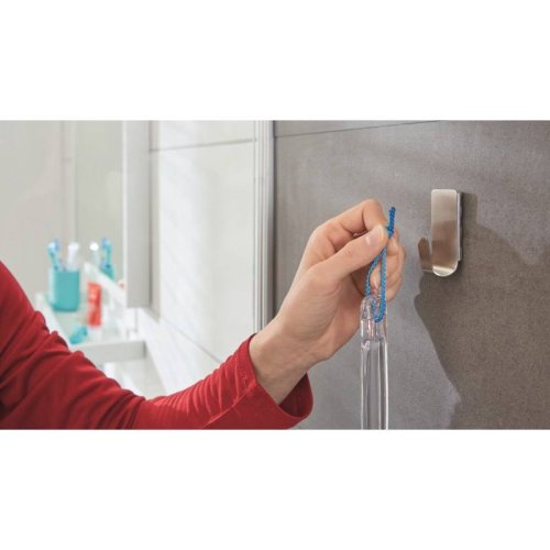 samolepiaci Tesa Powerstrips® Vodeodolný háčik nerez oceľ je elegantné kúpeľňové závesné riešenie využitia na zavesenie kozmetických prípravkov a pomôcok priamo v sprchovacom kúte alebo blízko vane vďaka technológii …