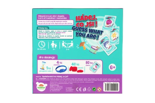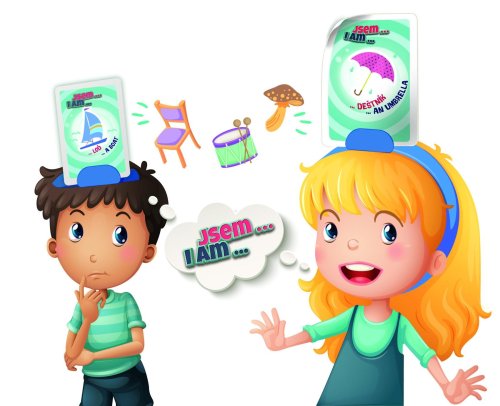 Zábavná spoločenská hra pre celú rodinu. Hra, ktorá zaručene rozosmeje celú rodinu alebo partiu priateľov. Veselá hádacia hra, pri ktorej si hráči nasadzujú čelenku s kartičkou a snažia sa pomocou otázok uhádnuť, kým alebo čím sú. Formou hry si hráči osvoja aj 80 anglických slovíčok. Nasaď si čelenku, vyber si kartu a pomocou otázok, na ktoré ti môžu spoluhráči odpovedať iba ÁNO alebo NIE, zisti, čo je na obrázku. Cieľom hry je nazbierať čo najviac žetónov za správne odpovede v limite presýpacích hodín. Rozmery balenia 23 x 21 x 6 cm. Vhodné pre deti od 6 rokov.