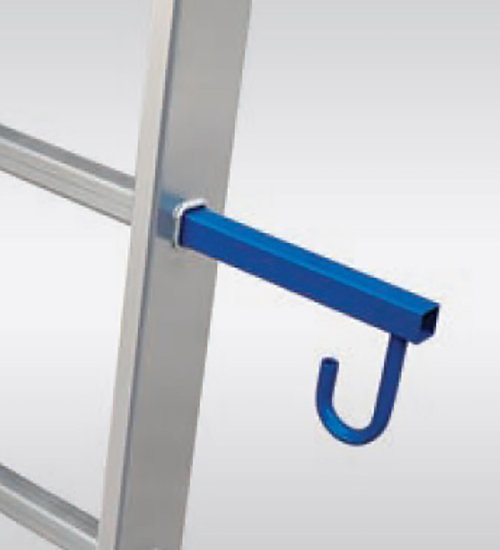 Závesné háky k rebríku VHR sú užitočné vtedy, ak potrebujete dodatočne zaistiť hornú opornú časť rebríka zaháknutím proti ev. oddialenie od opornej plochy. Rebrík ako taký však stále musí stáť spodnou časťou na pevnej podlahe, nie je dovolené liezť na rebrík, ktorý je iba voľne zavesený!
