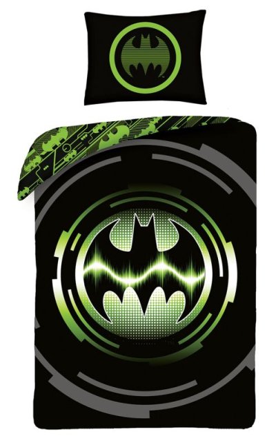 HALANTEX Obliečky Batman green 140/200, 70/90 Bavlnené obliečky na veľkú posteľ, zapínanie na zips, motív periny je z každej strany iný, možnosť prania na 40 ° C Materiál: 100% Bavlna Rozmer: 1x 140/200, 1x 70 90 cm