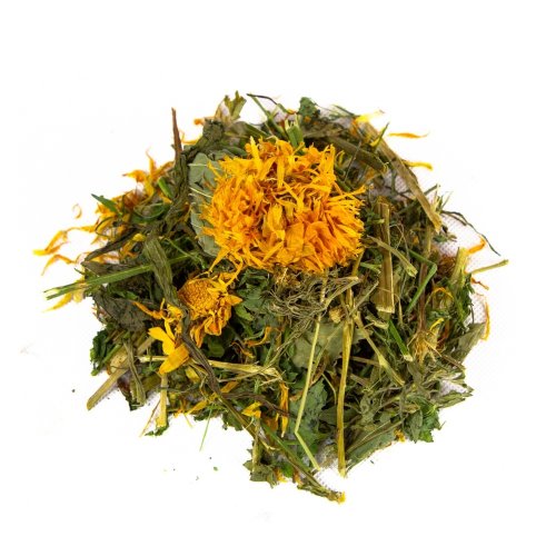 Zloženie : lieska, ďatelina, lucerna, brusnica, skorocel, paradajka, echinacea, brezový list, trávna zmes, nechtík.