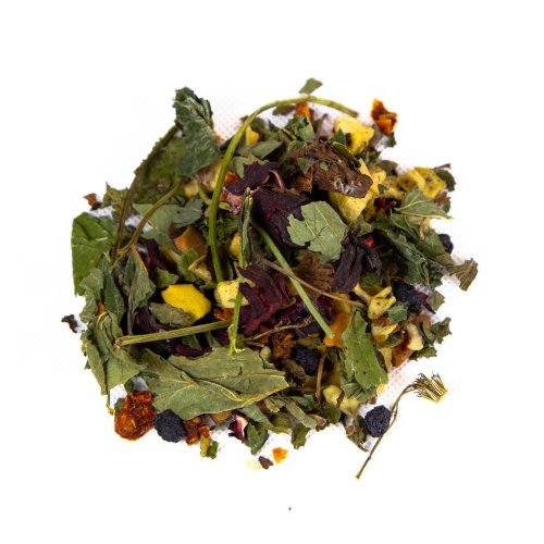 Zloženie : nechtík, list jahôd, ibištek, jablko, slamienka, slez, paradajka, arónia, banán, šípok.