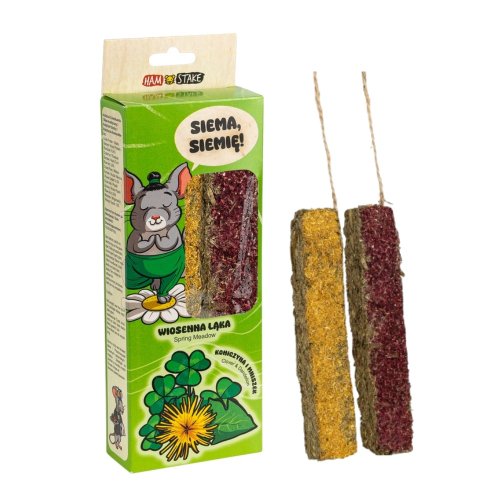 Ham Stake prírodná maškrta pre hlodavce v tvare tyčinky na povrázku s príchuťou jarnej lúky.