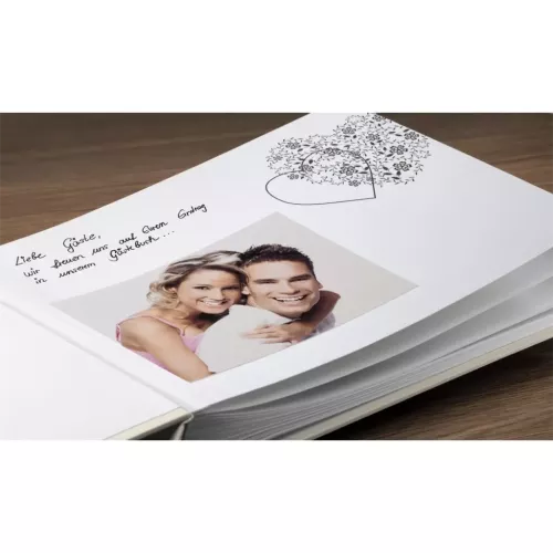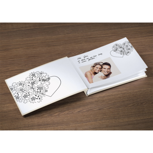 - album a zároveň kniha hostí v jednom, s množstvom miesta na lepenie fotografií, blahoželania, pozdravy, anekdoty... - tvrdé dosky z textúrovaného papiera s romantickým motívom srdca zvýrazneným lesklým...
