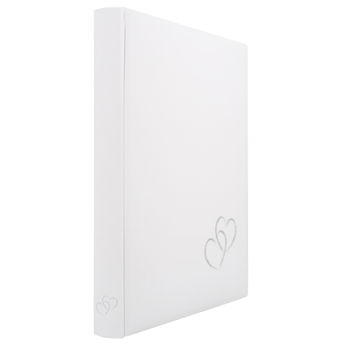 • album so svadobným motívom (dve strieborné srdcia na bielom pozadí)