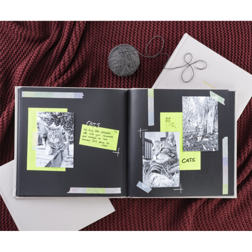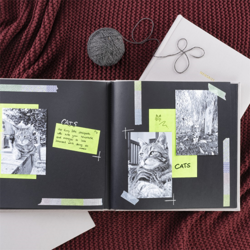 • čierne vnútorné listy poskytujú priestor pre vaše príbehy a spomienky (fotografie, kresby, texty, pohľadnice, vstupenky …)